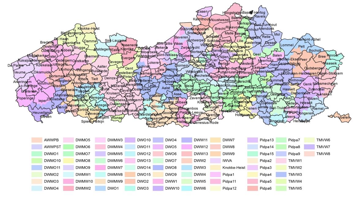 Dit blad geeft een overzicht van de leveringsgebieden in Vlaanderen. In totaal zijn dit er 75. In dit tabblad vind je terug in welk leveringsgebied je woning valt. De twee eerste kolommen bevatten een lijst van de gemeente met het daaraan gekoppelde leveringsgebied. Er is ook een kaart opgenomen.