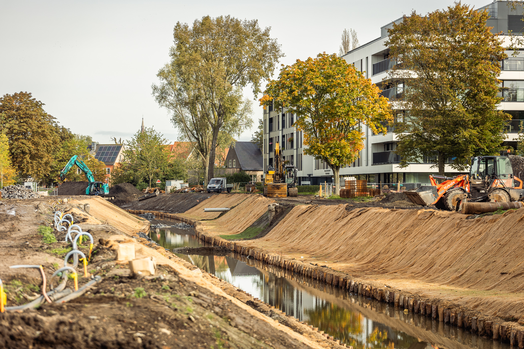 Dit project pakt ook de overstromingsproblemen in de buurt aan. Door de waterloop weer open te leggen, krijgt water meer ruimte. Zo werd er ruim 13.000 m³ grond afgevoerd over een afstand van 400 meter. Dat is het equivalent van meer dan 5 olympische zwembaden. Daarnaast blijft de oude koker functioneel om zo’n 3.000 m³ overstortwater uit de riolering en proper regenwater voor bevloeiing op te vangen.