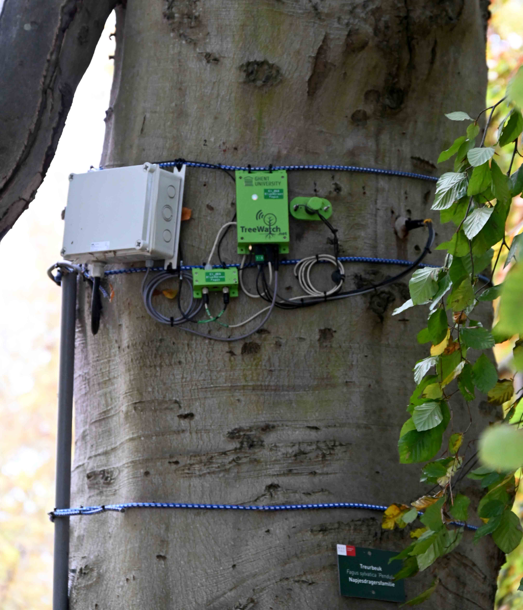 Sensoren in de bodem en langs de reien meten de grondwaterstand en waterkwaliteit. Die inzichten helpen de stad om bomen en planten slimmer te verzorgen en beter bestand te maken tegen droogte en hitte. In het Astridpark staat een treurbeuk met sensoren die de sapstroom en de groei meten. Zo kunnen we beter inschatten hoeveel hittestress de boom ondervindt. En dat is niet de enige: de stad monitort het welzijn van 93 jonge bomen op haar grondgebied via stamgroei- en omgevingssensoren. Het doel? Slim irrigeren met water uit de Brugse reien, in plaats van opgepompt water. Ook de grondwatertafel wordt gemeten, zodat vraag en aanbod beter op elkaar afgestemd kunnen worden.